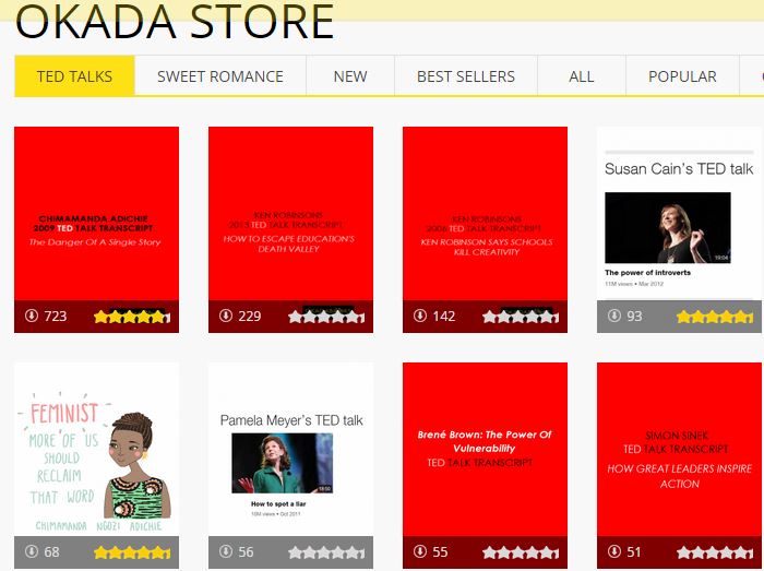 In case you missed the recent updates, TED Talks is now available on Okadabooks. With Ideas worth spreading from your favorite speakers, writers and inspiring individuals across the globe, for free. Download the app for FREE on: Android Playstore || Blackberry || or from the Website